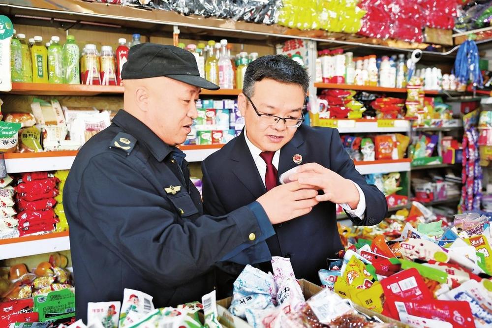民勤縣檢察院聯(lián)合縣市場監(jiān)管局對校園周邊小賣部、超市等重點場所開展食品安全專項檢查,護航未成年人健康成長(2024年3月25日拍攝)。