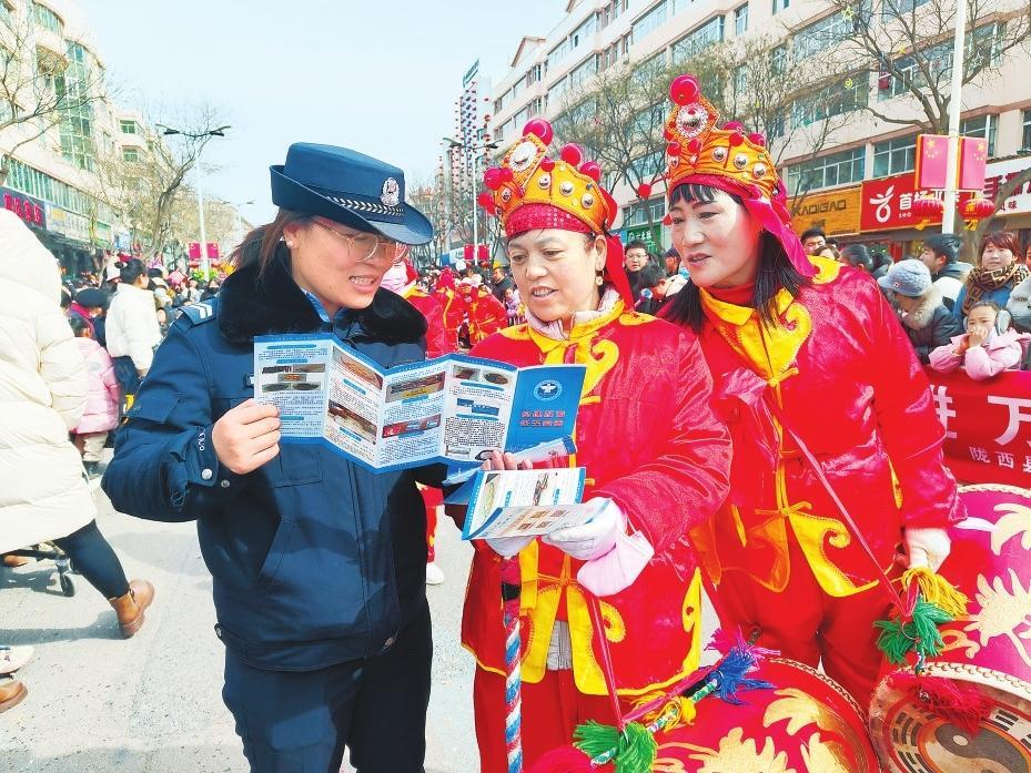 2月11日,合水縣公安民警巧借民俗活動群眾聚集的有利時機開展交通安全宣傳活動。新甘肅·甘肅法治報通訊員李曉攝