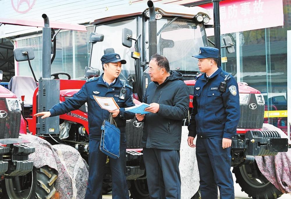 民警向農(nóng)機經(jīng)營者了解情況。榆中縣公安局城關(guān)派出所民警正在一家農(nóng)機超市里開展安全檢查,為春耕生產(chǎn)保駕護航。 新甘肅·甘肅法治報通訊員張軍揚攝