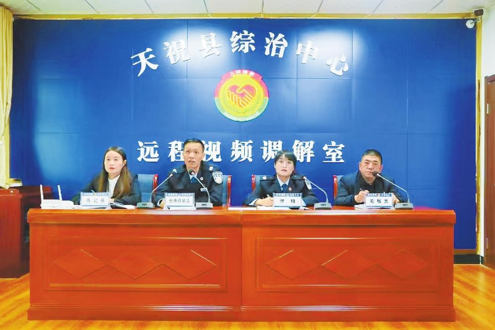 “針對全縣地域面積廣、群眾居住分散的實(shí)際,我們探索建立‘天涯若比鄰、服務(wù)零距離’遠(yuǎn)程視頻調(diào)解工作法,縣、鄉(xiāng)綜治中心視聯(lián)互通,開展‘線上’法律咨詢、政策解答和糾紛化解,有效降低群眾‘來回跑’的成本。”天??h委政法委副書記俞天煒說,通過建立“線上與線下結(jié)合、點(diǎn)上與面上結(jié)合、專業(yè)與兼職結(jié)合”的開放式、多層次、寬領(lǐng)域心理健康服務(wù)體系,全力打造“全民塑心、健康華銳”品牌,提升群眾心理健康指數(shù),疏導(dǎo)不良情緒,化解社會矛盾,維護(hù)社會穩(wěn)定。