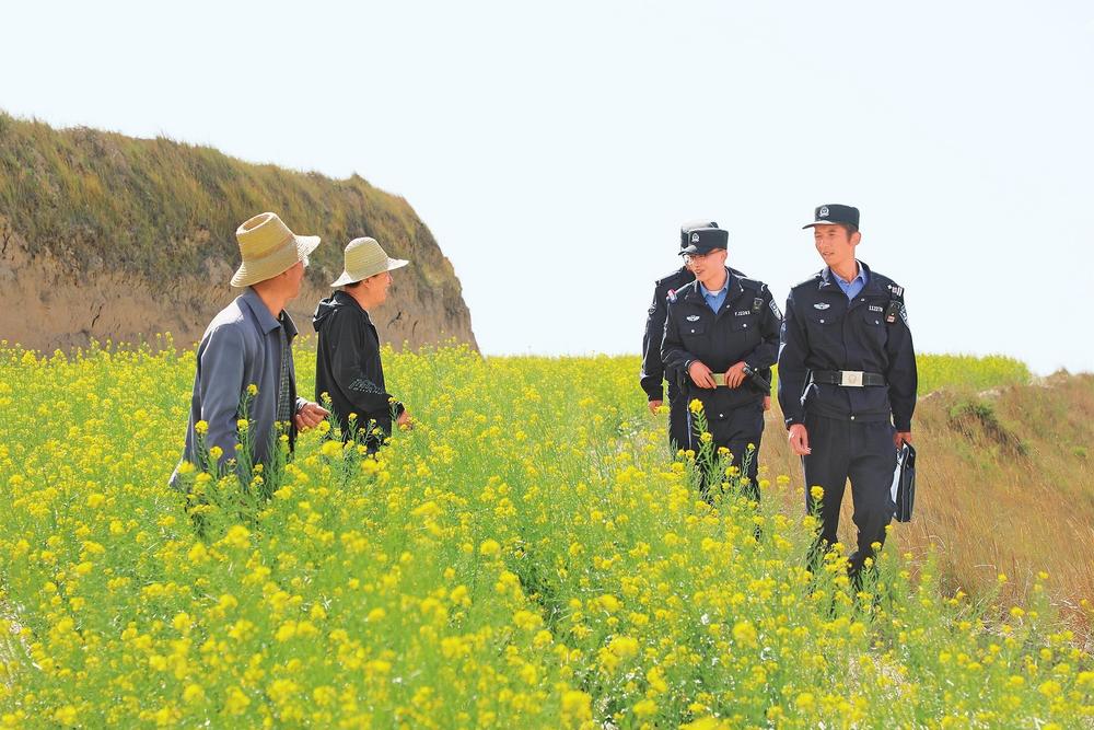 民警田間地頭走訪群眾。5月15日,定西市公安局安定分局組織民輔警開(kāi)展社情民意大走訪,面對(duì)面傾聽(tīng)群眾呼聲、征求群眾意見(jiàn),解決實(shí)際困難,宣講安全知識(shí),不斷增強(qiáng)人民群眾的獲得感、幸福感、安全感?! ⌒赂拭C·甘肅法治報(bào)通訊員楊永剛攝