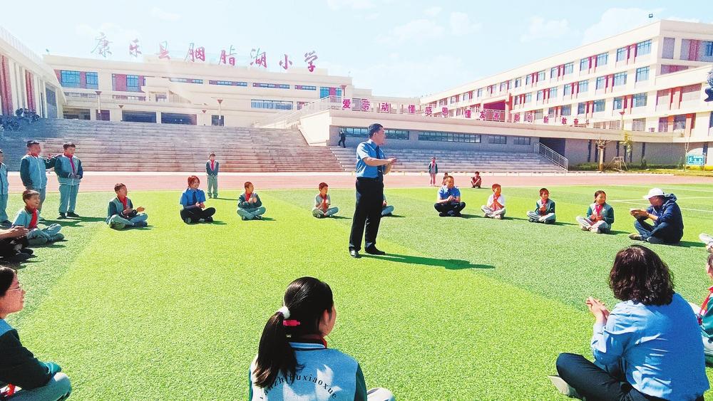 干警和孩子們游戲互動(dòng)。近日,康樂(lè)縣檢察院組織干警走進(jìn)康樂(lè)縣胭脂湖小學(xué),開(kāi)展法治進(jìn)校園宣講活動(dòng),為未成年人健康成長(zhǎng)構(gòu)筑堅(jiān)實(shí)司法屏障,用心用情守護(hù)“少年的你”。 新甘肅·甘肅法治報(bào)記者陳孝志攝