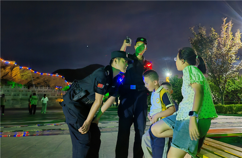 “小朋友,天黑了要注意安全,不要靠近湖邊。”特巡警大隊(duì)將公園廣場等群眾休閑聚集區(qū)域作為巡邏防控的重點(diǎn),民輔警在巡邏過程中一邊提醒玩耍的孩童注意安全,一邊向周邊群眾了解治安情況,同時主動詢問跳廣場舞的群眾是否存在噪音擾民等問題,及時化解潛在矛盾糾紛。“有你們巡邏,我們帶孩子出來玩都感到很安心!”在公園散步的群眾紛紛表示。