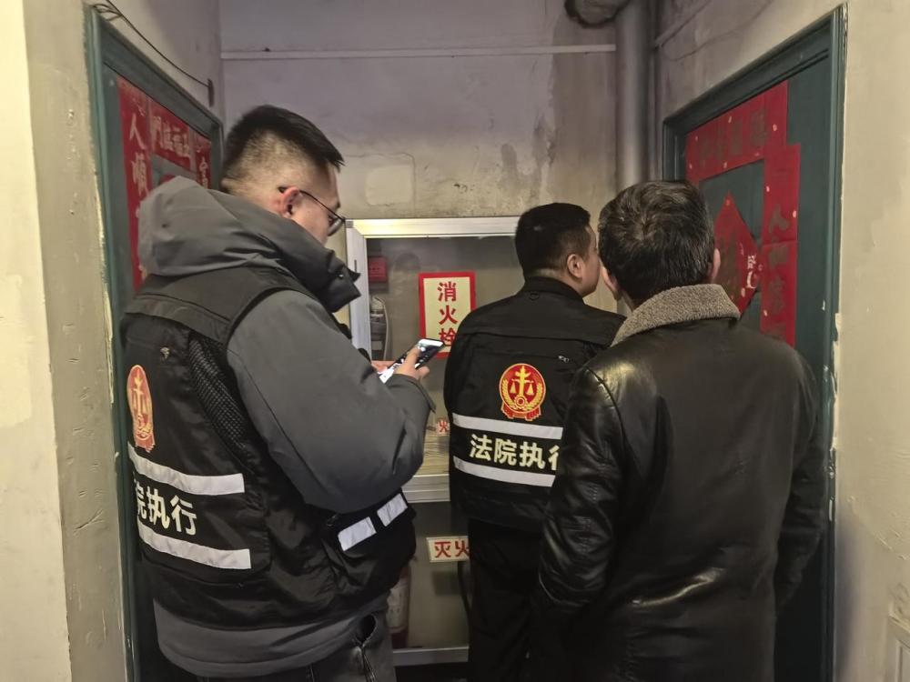 “請(qǐng)開門。我是城關(guān)區(qū)人民法院執(zhí)行局工作人員。”又敲了幾分鐘門后,屋內(nèi)依舊沒有任何反應(yīng)。最終大家只得暫時(shí)放棄,拍照取證后離開。