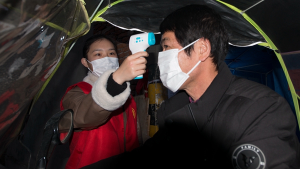 自疫情防控工作開展以來,湖北省咸寧市咸安區(qū)紀(jì)委監(jiān)委90后干部黃煬,始終堅(jiān)守防疫一線,參與卡點(diǎn)值守、入戶摸排、生活物資代購(gòu)等工作,耐心安撫居民情緒,為他們進(jìn)行心理疏導(dǎo)。圖為黃煬為夜歸的居民測(cè)量體溫。(湖北省咸寧市咸安區(qū)紀(jì)委監(jiān)委 魯一凡 攝)