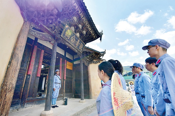 福建省長(zhǎng)汀縣中復(fù)村的紅軍烈士后代向參觀學(xué)習(xí)的黨員干部講述長(zhǎng)征的故事。 新華社記者 魏培全 攝
