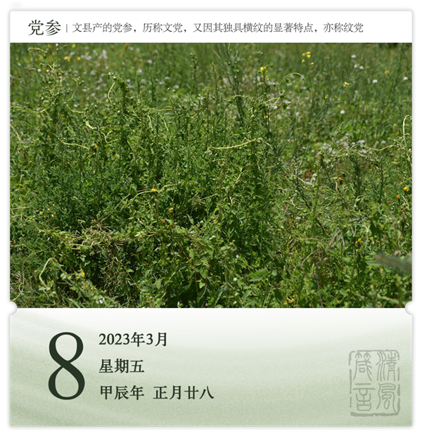 簡介:黨參,多年生纏繞藤本,我國有名的藥食兩用植物,具有健脾益肺、養(yǎng)血生津之功效?,F(xiàn)代藥理研究表明,黨參還具有增強機體免疫力、保護胃腸道黏膜及抗?jié)?、促進造血機能、延緩衰老等多種藥理作用。黨參也是保健品,可入膳食,可做茶也可泡酒。花果期7-10月。文縣產(chǎn)的黨參,歷稱“文黨”,又因其獨具橫紋的顯著特點,亦稱“紋黨”,質(zhì)地優(yōu)良,歷史悠久,生長特殊,加工考究,入藥精道。其藥用價值與人參并列,為質(zhì)高的滋補佳品。