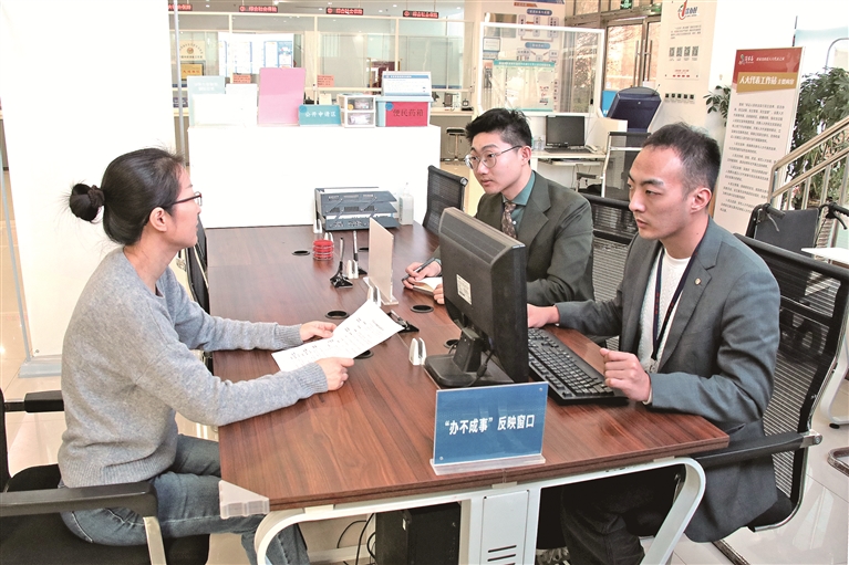 山東省青島市黃島區(qū)紀委監(jiān)委聚焦漠視群眾合理訴求、推諉扯皮“打太極”、不擔(dān)當(dāng)不作為等不正之風(fēng),“懲治防”一體發(fā)力,堅決糾治不擔(dān)當(dāng)不作為問題。圖為該區(qū)紀檢監(jiān)察干部在“辦不成事”反映窗口向群眾了解有關(guān)情況。杜翔宇 攝