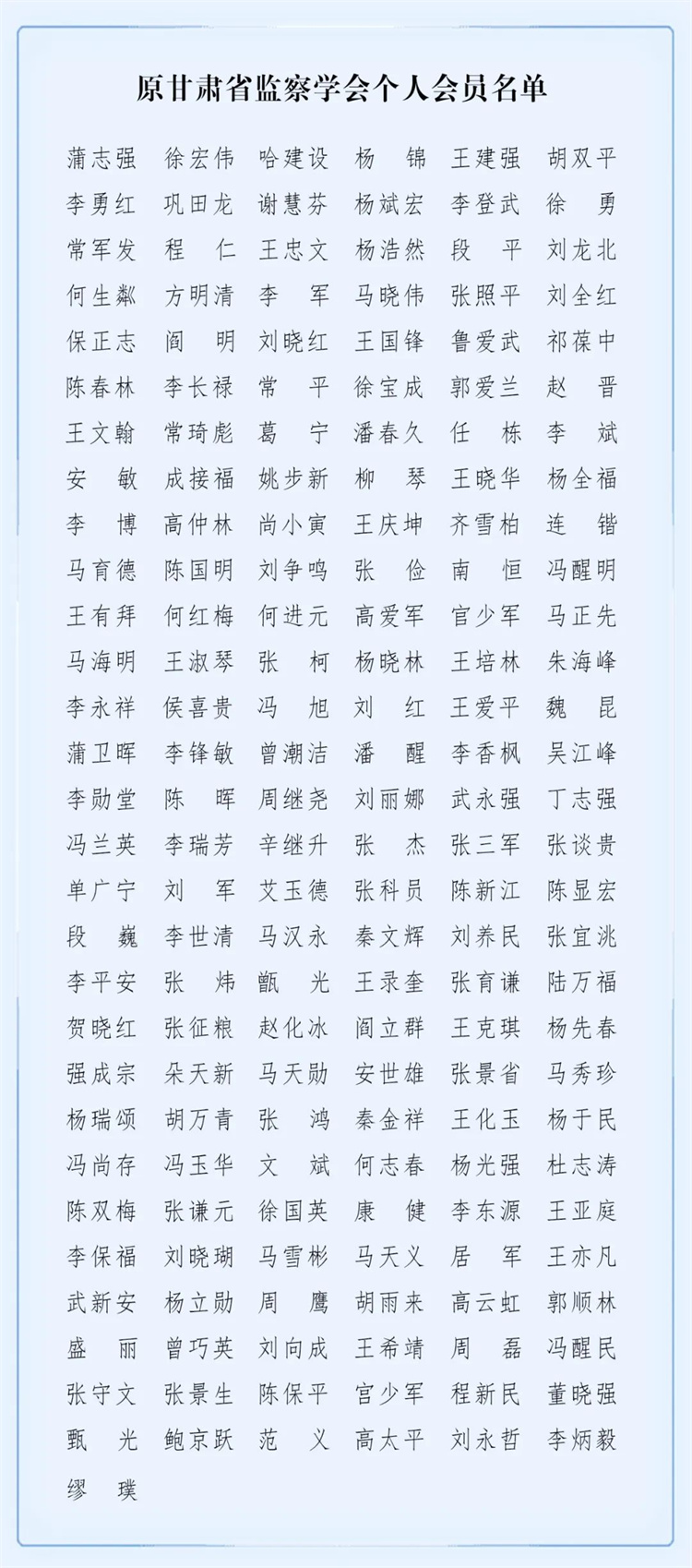 原甘肅省監(jiān)察學(xué)會已于2024年5月更名為“甘肅省紀檢監(jiān)察協(xié)會”。為推動更名換屆后的甘肅省紀檢監(jiān)察協(xié)會輕裝上陣,更好服務(wù)紀檢監(jiān)察工作大局,按照協(xié)會第五屆理事會第二次會議精神,決定對原甘肅省監(jiān)察學(xué)會個人會員和單位會員進行清理,現(xiàn)就有關(guān)事項公告如下: