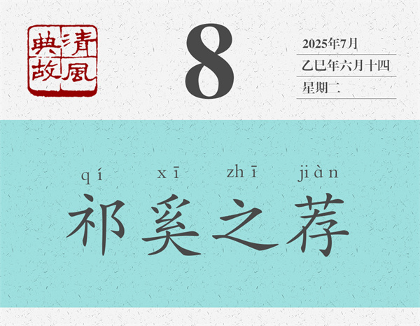 左丘明認為,祁奚才是真正能舉薦賢能的人:“稱其仇,不為諂;立其子,不為比;舉其偏,不為黨。”意思是,祁奚推舉他的仇人,不是為了諂媚;推薦自己的兒子,不是出于偏愛;推薦自己的下屬,不是為了結(jié)黨營私。《呂氏春秋》稱:“外舉不避仇,內(nèi)舉不避子,祁黃羊可謂公矣。”后世即以“祁奚之薦”為典,形容舉薦人才心胸開闊,公正無私。唐人姚元崇《答張九齡書》:“歷官三朝,年逾一紀,凡所稱薦,罕避嫌疑,實有祁奚之舉。”