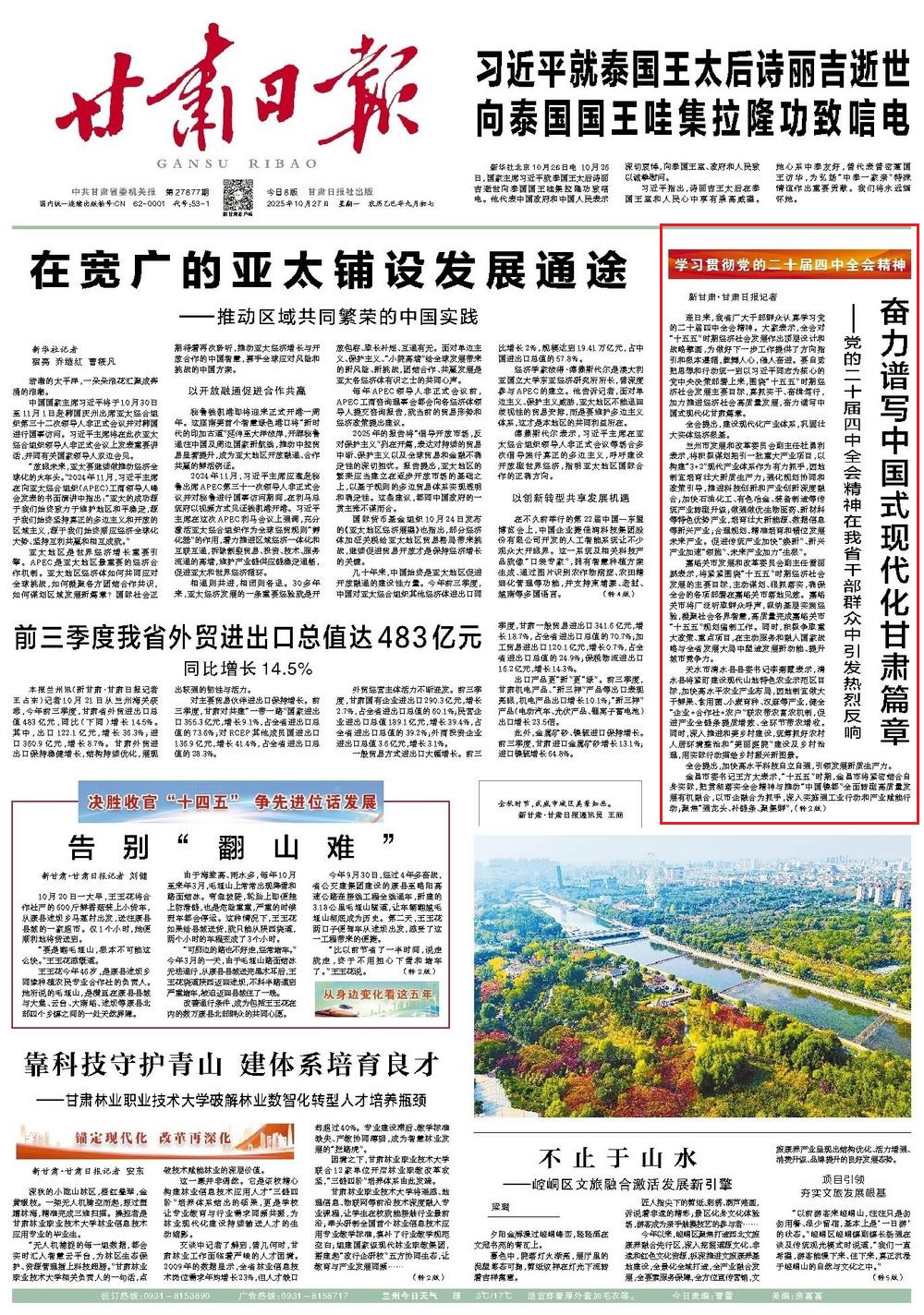 連日來,我省廣大干部群眾認(rèn)真學(xué)習(xí)黨的二十屆四中全會精神。大家表示,全會對“十五五”時期經(jīng)濟(jì)社會發(fā)展作出頂層設(shè)計和戰(zhàn)略擘畫,為做好下一步工作提供了方向指引和根本遵循,鼓舞人心,催人奮進(jìn)。要自覺把思想和行動統(tǒng)一到以習(xí)近平同志為核心的黨中央決策部署上來,圍繞“十五五”時期經(jīng)濟(jì)社會發(fā)展主要目標(biāo),真抓實(shí)干、奮楫篤行,加力推進(jìn)經(jīng)濟(jì)社會高質(zhì)量發(fā)展,奮力譜寫中國式現(xiàn)代化甘肅篇章。