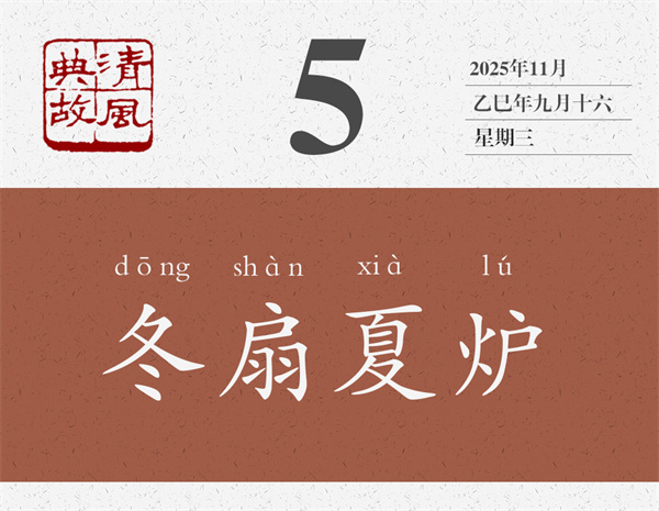 以冬進(jìn)爐,以夏奏扇,明明是違背常識的事,為什么還有人喜歡做呢?所以,后世即以“冬扇夏爐”為典,形容一個人的言論或行動不合時宜,不切實(shí)際。清人張祥齡《詞論》:“左春右秋,冰蟲之見,生今反古,是冬箑(shà)夏爐,烏乎能。”箑,扇子。揚(yáng)雄《方言》:“自關(guān)而東謂之箑,自關(guān)而西謂之扇。”