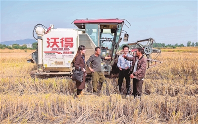 糧食安全是“國之大者”。安徽省含山縣紀(jì)委監(jiān)委聚焦高標(biāo)準(zhǔn)農(nóng)田建設(shè)管理中的突出問題開展一線走訪,推動“糧田”變“良田”。圖為該縣紀(jì)檢監(jiān)察干部在環(huán)峰鎮(zhèn)城北村水稻收割現(xiàn)場了解相關(guān)情況。歐宗濤 攝