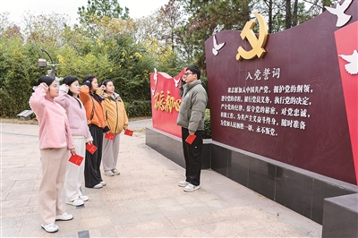 12月2日,江蘇省南京市溧水區(qū)紀委監(jiān)委組織部分青年黨員干部進行黨章學(xué)習(xí)。圖為青年黨員干部在重溫入黨誓詞。劉勝君 攝