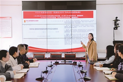 各級紀檢監(jiān)察機關(guān)抓實對黨內(nèi)法規(guī)制度的教育培訓(xùn),以學(xué)促干,不斷增強依規(guī)依紀依法履職能力和水平。圖為紀檢監(jiān)察干部在組織學(xué)習(xí)《黨政機關(guān)厲行節(jié)約反對浪費條例》。寧庭紀 攝
