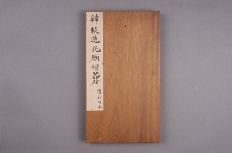 清代,高31.2厘米,寬17.7厘米,裝裱成冊?!抖Y器碑》全稱《漢魯相韓敕造孔廟禮器碑》,是東漢永壽二年(公元156年)刻立在山東曲阜孔廟的隸書碑刻,現(xiàn)藏于曲阜漢魏碑刻陳列館。此碑記載了魯相韓敕修飾孔廟、增置各種禮器的事跡。作為漢代隸書成熟時期的代表作之一,《禮器碑》在書法史上享有崇高地位,被眾多學者、書法家推崇為漢碑典范。