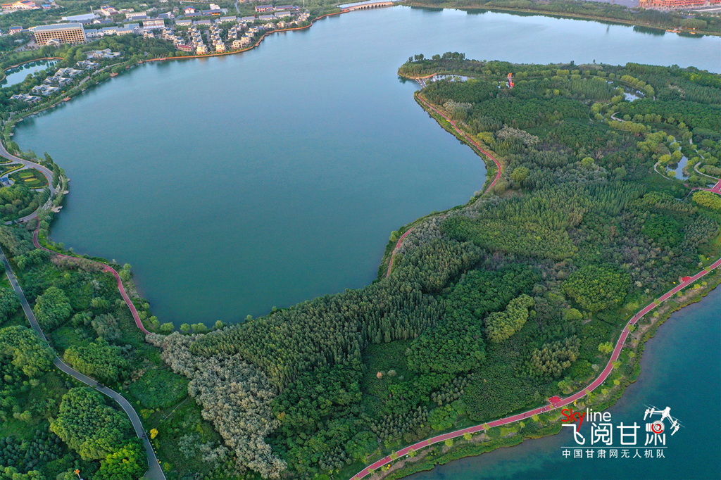 近日,夕陽下的甘肅省張掖市蘆水灣生態(tài)景區(qū)湖水湛藍(lán),草木翠綠,景色宜人。蘆水灣生態(tài)景區(qū)位于張掖濱河新區(qū),占地4500畝,其中水域面積2260畝,綠化林地1790畝,2018年評為國家4A級景區(qū),被譽(yù)為張掖城市的“后花園”和“加濕器”。