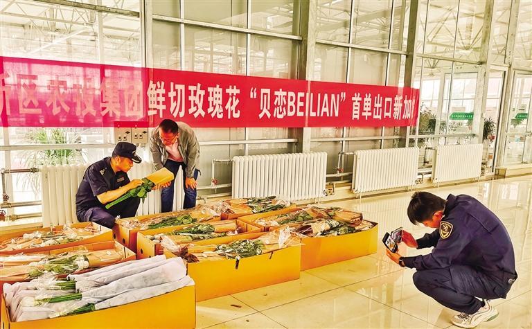 海關(guān)工作人員檢驗(yàn)檢疫新區(qū)鮮切玫瑰花 張建平 攝