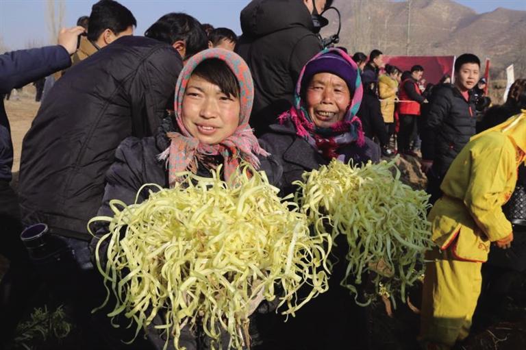 “今年地頭價每斤15元,這還是頭一回。”勞動間隙,村民們議論著韭黃的價格,隨后把一筐筐金燦燦的韭黃放在商販的稱上,接著到手的便是一疊疊鈔票。“給韭黃抖土感覺就像數錢一樣,嘿嘿,麥草下的‘黃金’今年又豐收了。”村民們你一言我一語,爽朗的笑聲回蕩在冬日的余暉里。