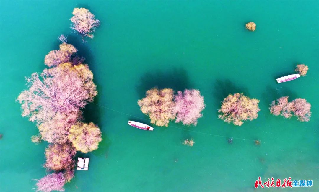 在岸邊,可以看到10公里的柳樹“站”在水中,根連著根,枝連著枝。這些高大的柳樹,不僅減緩了水面上襲來的風(fēng)浪,形成第一道保護(hù)“堤壩”,還成為一道亮麗的風(fēng)景線——倒映在湖面上的樹木婀娜多姿,鳥兒在樹杈上筑巢棲息,魚兒在樹下游玩,好一幅綿長的水鄉(xiāng)畫卷。