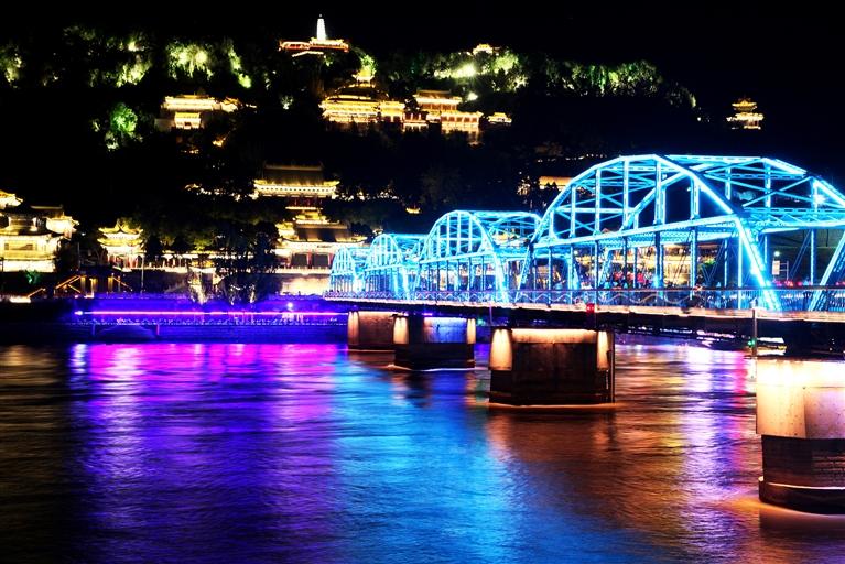 中國甘肅網5月24日訊 據蘭州日報報道記者 張建平 攝)為迎接甘肅省第十四次黨代會勝利召開,我市在標志性橋梁、廣場及樓體精心組織以“蘭州藍”為主題的燈光秀,營造濃厚的喜慶氛圍。中山橋、黃河樓等處燈光展示“蘭州藍”,這顯示了全市上下守護碧水藍天的信心,更昭示著全市黨員干部堅定垂范清廉蘭州,共建政治生態(tài)“蘭州藍”的決心。