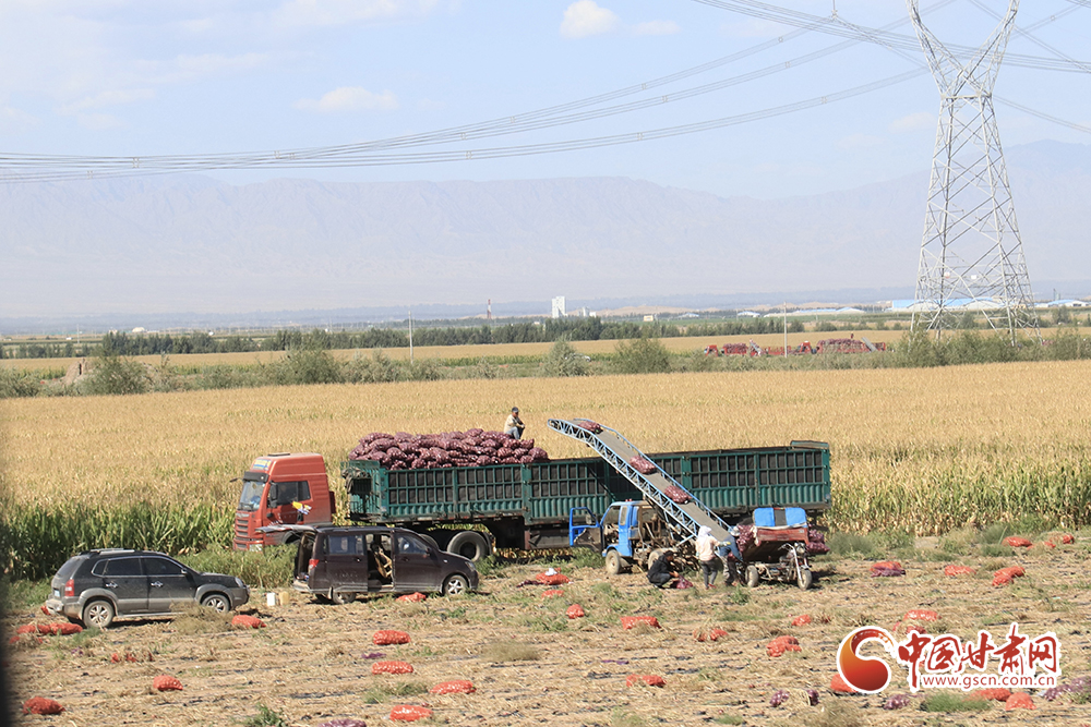 腳下有稻田,耳邊有水聲。帶著泥土的洋蔥整跺碼放,依次裝進(jìn)卡車?yán)?,鮮綠的高原夏菜在田間地頭收割后送進(jìn)發(fā)往南方的冷柜,百畝靑儲(chǔ)玉米經(jīng)過壓縮打包等待進(jìn)入牧場(chǎng)糧倉……祁連山下秋收正在火熱進(jìn)行中。