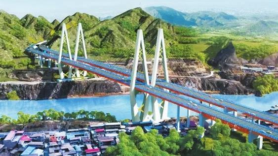 大橋主跨328米,雙向八車道,為半漂浮體系組合梁斜拉橋。橋塔采用分離式雙鉆石四索面“雙子星”新型結(jié)構(gòu),北塔高133米,南塔高152米,是國(guó)內(nèi)Ⅷ度以上地震烈度區(qū)最大跨度分幅聯(lián)塔斜拉橋。