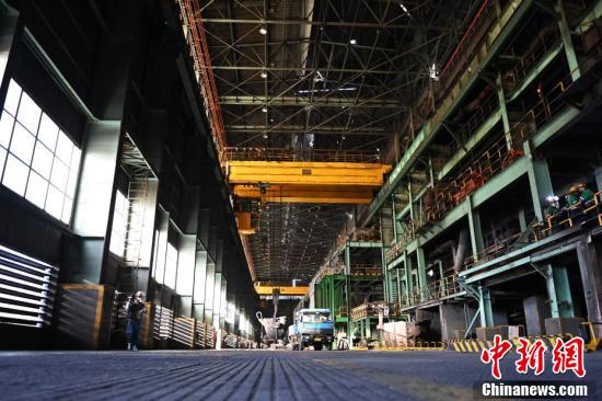 金川集團(tuán)鎳冶煉廠閃速爐車間主廠房?jī)?nèi),工作人員進(jìn)行鋼包轉(zhuǎn)運(yùn)工作。