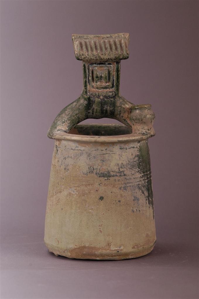 其中,綠釉陶井高26.2厘米,口9.4厘米,底12.5厘米,為蘭州市博物館館藏三級文物。兩漢時期陶井作為漢代模型明器的重要組成部分,普遍見于兩漢時期的墓葬中。漢代推崇儒家思想,以“孝”治國,提倡厚葬,“事死如事生”的喪葬觀念,導(dǎo)致在兩漢墓葬中多隨葬陶井模型明器,是模仿現(xiàn)實中的水井設(shè)施,將之做成模型埋入墓中供逝者享用。漢代,水井設(shè)施被廣泛地使用,考古發(fā)現(xiàn)的漢代居住、農(nóng)業(yè)及手工業(yè)遺址中出土有大量的水井遺跡。