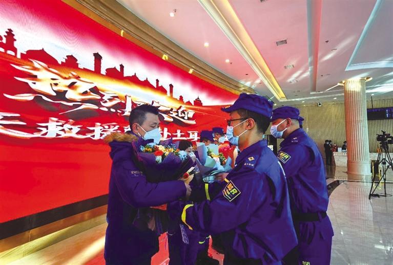 原標(biāo)題:9名馳援土耳其的甘肅藍(lán)天救援隊隊員平安歸來