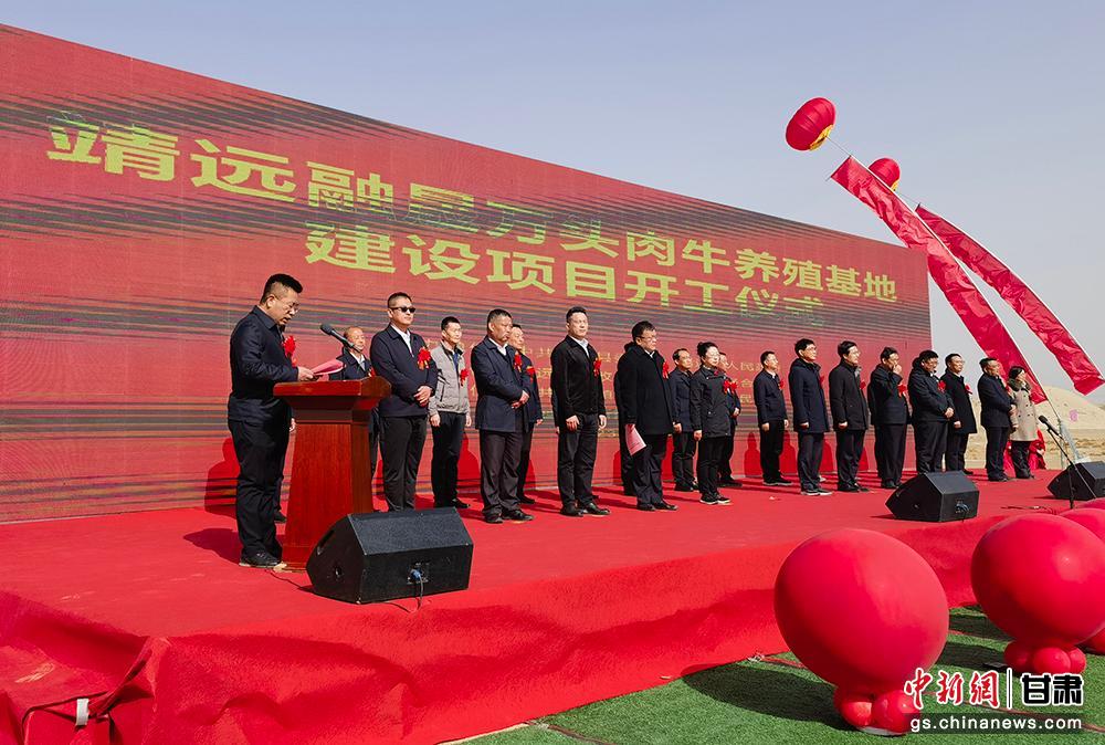4月8日,靖遠(yuǎn)融晟萬(wàn)頭肉牛養(yǎng)殖基地建設(shè)項(xiàng)目開工儀式于甘肅省白銀市靖遠(yuǎn)縣舉行。劉玉桃攝