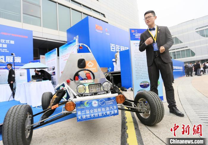 圖為甘肅高校學(xué)子展示新能源汽車(chē)輕量化技術(shù)。(資料圖)高展攝