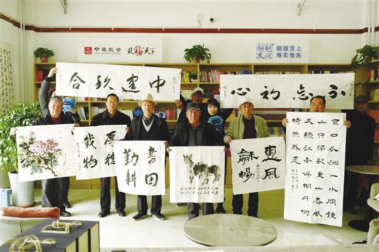 “家門口就有書屋,環(huán)境特別好,大人小孩都愛去。”康樂縣群眾對胭脂湖公園內(nèi)的中建玖合書屋豎起大拇指。走進(jìn)書屋,濃濃書香撲面而來,仿古磚、木質(zhì)書架等古香古色的室內(nèi)布置與當(dāng)?shù)厝罕妱?chuàng)作的書畫作品渾然一體,彰顯雅致。