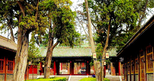 由于山區(qū)祭祀不便,明成化十九年,地方官員向明朝廷申請在秦州專立伏羲廟,于是伏羲祭祀中心從卦臺山移至天水西關(guān)伏羲廟。伏羲廟有確切記載的年代是元代的三皇廟。三皇廟時,規(guī)模較小,沒有塑像,伏羲廟也正是在三皇廟的基礎(chǔ)上創(chuàng)建而成。根據(jù)史料,宋、金、元對三皇陵寢祭祀相當(dāng)重視。廟里多株七八百年,乃至上千年的古樹也是那時所植,這些有靈性的古老的生命,見證了無數(shù)久遠(yuǎn)而輝煌的歷史。