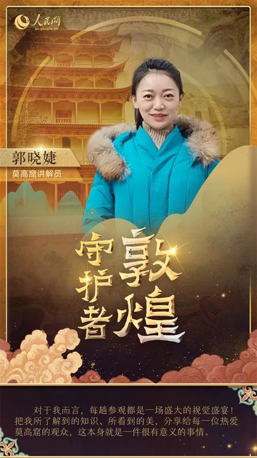 2008年大學(xué)畢業(yè)后,郭曉婕決定回到故鄉(xiāng)敦煌,選擇在莫高窟當(dāng)導(dǎo)游。對(duì)于郭曉婕來說,每一次帶領(lǐng)游客參觀莫高窟,都是一場(chǎng)盛大的視覺盛宴。通過精美的壁畫和雕塑,現(xiàn)代人可以一窺古老的絲綢之路,更好地了解燦爛的敦煌文化。