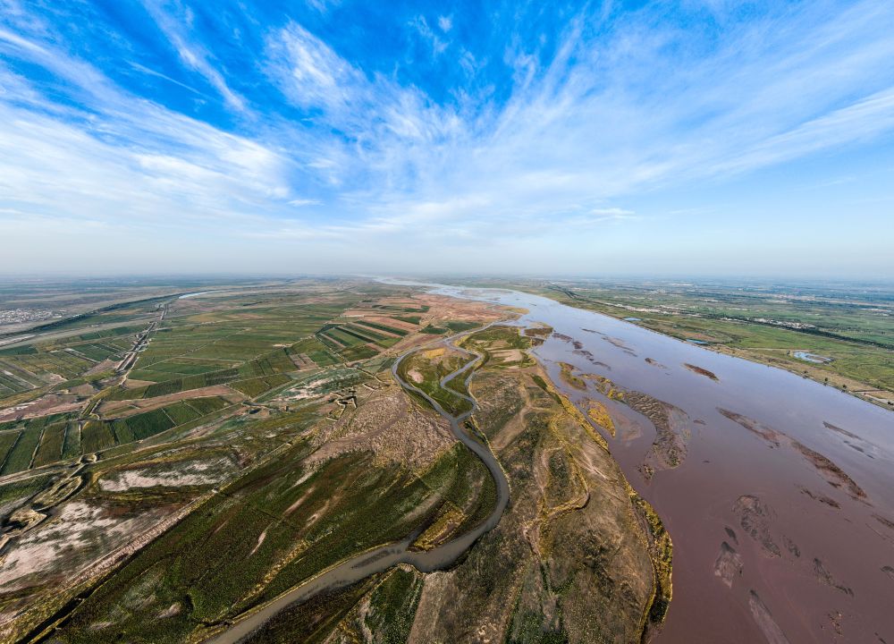 黃河從內(nèi)蒙古巴彥淖爾市臨河區(qū)雙河鎮(zhèn)流過(無人機(jī)照片,2023年9月15日攝)。新華社記者 邢廣利 攝