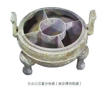 這里說的“五熟釜”,內(nèi)分?jǐn)?shù)格,開煮時(shí),中間爐火熾烈,四周湯羹沸騰,可以同時(shí)煮熟多種食物。很像北京涮羊肉鍋和重慶九宮格的初級合體。