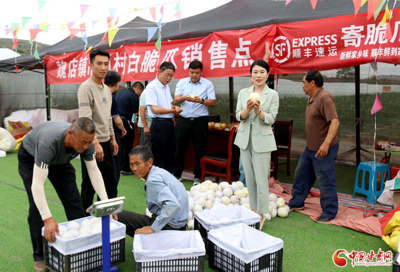 2023年,秦安縣委、縣政府把培育發(fā)展白脆瓜作為促進(jìn)秦安農(nóng)民增收的又一重要抓手后,她充分發(fā)揮擁有一定的銷售市場的特長,積極進(jìn)行市場推介,引導(dǎo)群眾大力發(fā)展白脆瓜產(chǎn)業(yè),成功將秦安白脆瓜打入蘭州國際高原夏菜市場,為群眾鋪開了一條白脆瓜的熱銷路,幫助群眾銷售白脆瓜16萬斤,銷售額達(dá)160萬元以上,不僅解決了魏店及周邊5個鄉(xiāng)鎮(zhèn)群眾白脆瓜的銷售問題,更為群眾進(jìn)一步發(fā)展白脆瓜產(chǎn)業(yè)增強(qiáng)了信心。