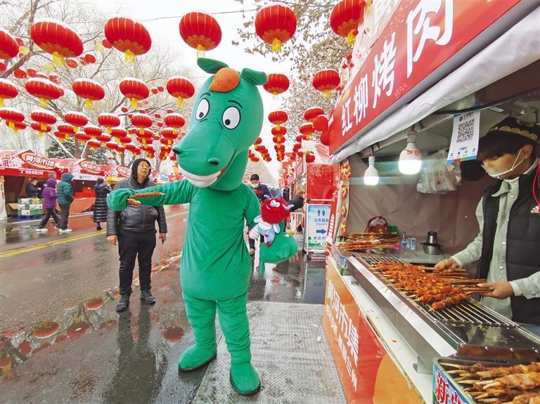 中國甘肅網(wǎng)2月3日訊 據(jù)蘭州晚報報道 2月2日北方小年當(dāng)天,黃河市集在北濱河路白塔山公園門前熱鬧開市?,F(xiàn)場,大紅燈籠高高懸掛、福字帳篷年味滿滿,紅柳烤肉、冰糖雪梨、糖葫蘆、糖畫、牛奶雞蛋醪糟、丁娃燒餅等特色小吃攪動著市民游客的味蕾;民間手藝人制作的非遺手工藝品、洮硯、傳統(tǒng)絨花做工精巧,吸引了許多人駐足欣賞;太平鼓、舞獅等表演在市場上掀起了高潮,許多市民游客上前摸摸獅子討個好彩頭,在小年這天沉浸式體驗了新春市集里的幸福煙火氣息。