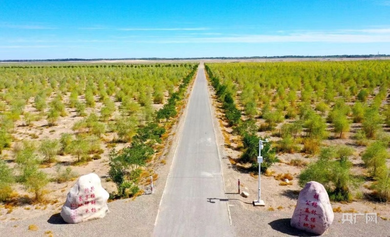 2016年,金塔縣啟動(dòng)實(shí)施環(huán)城防護(hù)林建設(shè)工程,在縣城西、南、東三個(gè)片區(qū)建成了以胡楊為主、其他鄉(xiāng)土樹(shù)種為輔的人工防護(hù)林6.61萬(wàn)畝,建成主題紀(jì)念林30多個(gè)。“金塔三面環(huán)沙,風(fēng)一吹就黃沙漫天,眼睛都不敢睜開(kāi)。后來(lái)我們累計(jì)投資4.2億元,通過(guò)挖穴換土、架設(shè)滴管等方式栽植各類(lèi)苗木357余萬(wàn)株,在風(fēng)沙線上建起了一道道‘綠色防線’。”金塔縣環(huán)城防護(hù)林負(fù)責(zé)人丁愛(ài)軍說(shuō)。