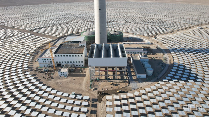 近日,走進(jìn)金塔中光太陽(yáng)能“10萬(wàn)千瓦光熱+60萬(wàn)千瓦光伏”項(xiàng)目建設(shè)現(xiàn)場(chǎng),只見(jiàn)綿延數(shù)十公里的太陽(yáng)能電池板整齊排列,25594面單塊面積30平方米的高精度定日鏡環(huán)繞著247米高的吸熱塔,如同一朵巨大的銀色“向日葵”。