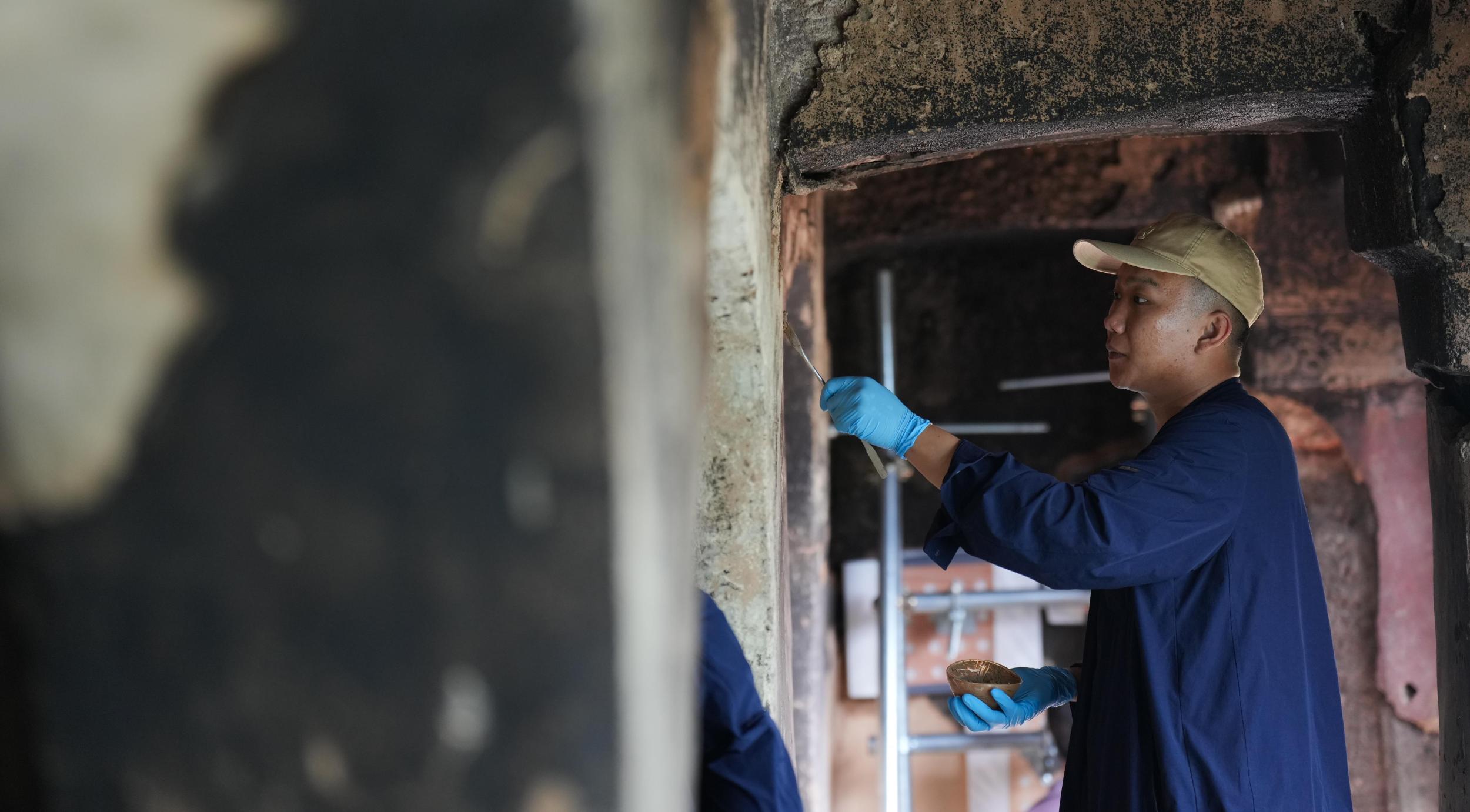 △工作人員對麥積山石窟進(jìn)行保護(hù)修繕。(總臺國廣記者李晉拍攝)