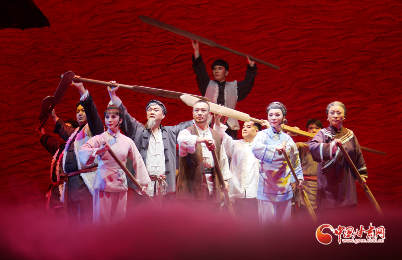 甘肅省隴劇院歷經(jīng)三年精心打造的隴劇《大河?xùn)|流》是國家藝術(shù)基金2024年度大型舞臺劇和作品創(chuàng)作資助項目。該劇以20世紀(jì)30年代末抗戰(zhàn)為背景,運用具有地方特色的隴劇形式,生動描繪了大西北黃河邊的一群筏客子在國家危難之際,如何摒棄個人恩怨,團結(jié)一致支援抗戰(zhàn),組成水上大型運輸隊,將大量物資安全送達(dá)抗戰(zhàn)前線,創(chuàng)造了“羊皮筏子賽軍艦”的傳奇故事。