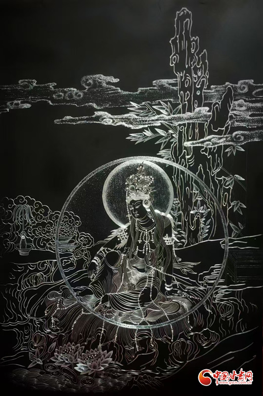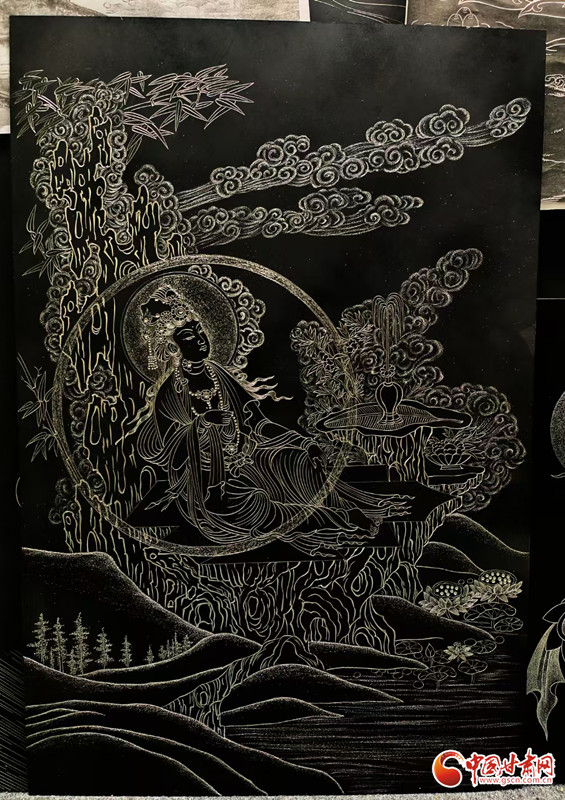 對(duì)張兆武來(lái)說(shuō),做鍥金畫(huà)從來(lái)不是“照貓畫(huà)虎”。他琢磨傳統(tǒng)書(shū)畫(huà)的筆墨、篆刻的力道,慢慢攢出了自己的一套刀法;創(chuàng)作時(shí),心里裝的也全是敦煌——從莫高窟第112窟里“反彈琵琶”的靈動(dòng)舞姿,到傳說(shuō)中“九色神鹿”的溫潤(rùn)模樣,都成了他刻刀下的主角。他刻出的飛天,飄帶像帶著風(fēng);刻出的菩薩,眉眼間透著莊重;金屬的光澤在畫(huà)面上流轉(zhuǎn),明明是靜態(tài)的畫(huà),卻像在講一段活的敦煌故事。“不用多說(shuō)什么,看過(guò)的人能懂這份美。”張兆武說(shuō)的這份“懂”,恰恰打破了文化和語(yǔ)言的距離,讓東方的古老美學(xué),和全世界的現(xiàn)代審美碰出了共鳴。