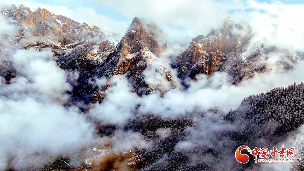 11月9日,雪后的甘南州迭部縣扎尕那景區(qū)銀裝素裹,云霧繚繞。巍峨山峰覆上新雪,古樸藏寨靜臥于皚皚雪野之間,嶙峋石林與繚繞云霧相映成趣,勾勒出一幅靜謐壯麗的高原冬日畫卷。