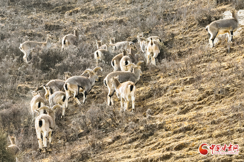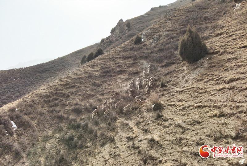 近日,民樂縣大河口自然保護(hù)站扁都口資源管護(hù)站人員于高海拔區(qū)域日常巡護(hù)時,邂逅一大群巖羊在山坡覓食、奔跑的珍貴場景,巖羊數(shù)量約50只。