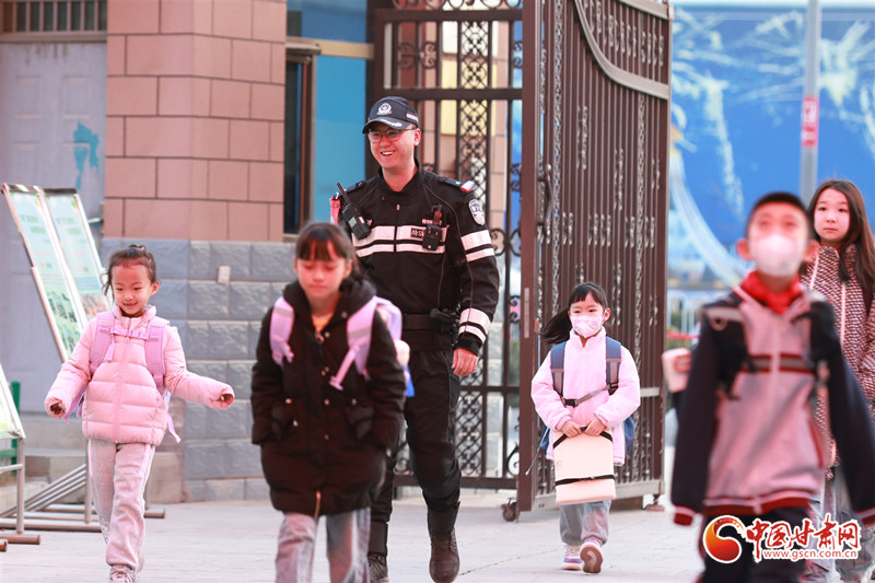 2月25日,蘭州市中小學(xué)開學(xué),學(xué)生們走進(jìn)校園,開始新學(xué)期學(xué)習(xí)生活,蘭州市公安局交管支隊(duì)城關(guān)大隊(duì)輔警在城關(guān)區(qū)水車園小學(xué)民勤街分校,為學(xué)生們講解交通安全知識(shí)。