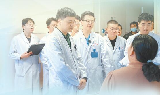 記者趕到住院部13樓普外科一病區(qū)時,查房已經開始了:主任張輝走在前面,李昕和七八位年輕醫(yī)生跟在身后,魚貫進入一間間病房。“吃飯怎么樣?”“晚上能睡踏實嗎?”“能動就多動動。”醫(yī)患間簡短溫和的對話,是患者與家屬期待的時刻。
