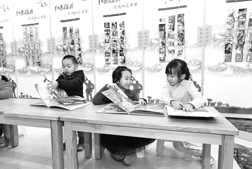 圖為不少小讀者在連環(huán)畫閱讀體驗(yàn)區(qū)閱讀。
