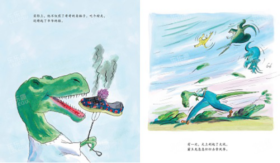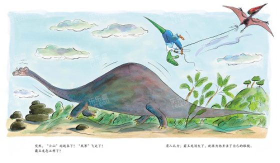 一只可憐的霸王龍弄丟了自己的眼鏡。沒有眼鏡,他分不清馬桶和洗臉盆;沒有眼鏡,他分不清咸魚和臭襪子……直到一個(gè)大風(fēng)天,霸王龍拉著一個(gè)“風(fēng)箏”吃力地爬上了一座“小山”,突然,“小山”站起來(lái)了,“風(fēng)箏”拉著他飛走了。霸王龍會(huì)遇到危險(xiǎn)嗎?他能平安地回來(lái)嗎?